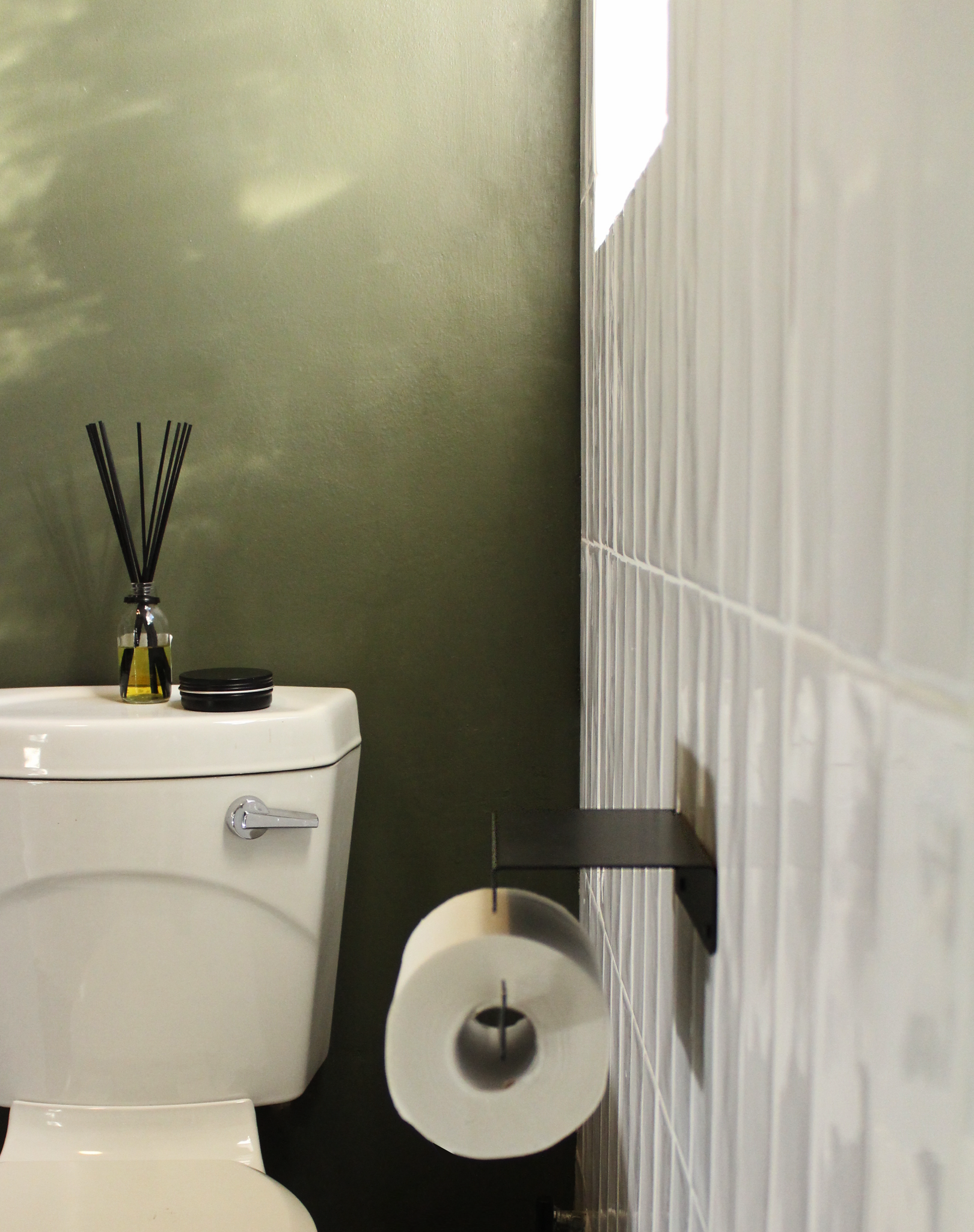 A toilet paper holder that also acts as a small shelf to keep a scent spritzer readily available, or to place your phone/ small belongings whilst using the loo. Material: Stainless steel 135mm (l) x 80mm (w) x 85mm (h) Made in Cape Town by Joon.