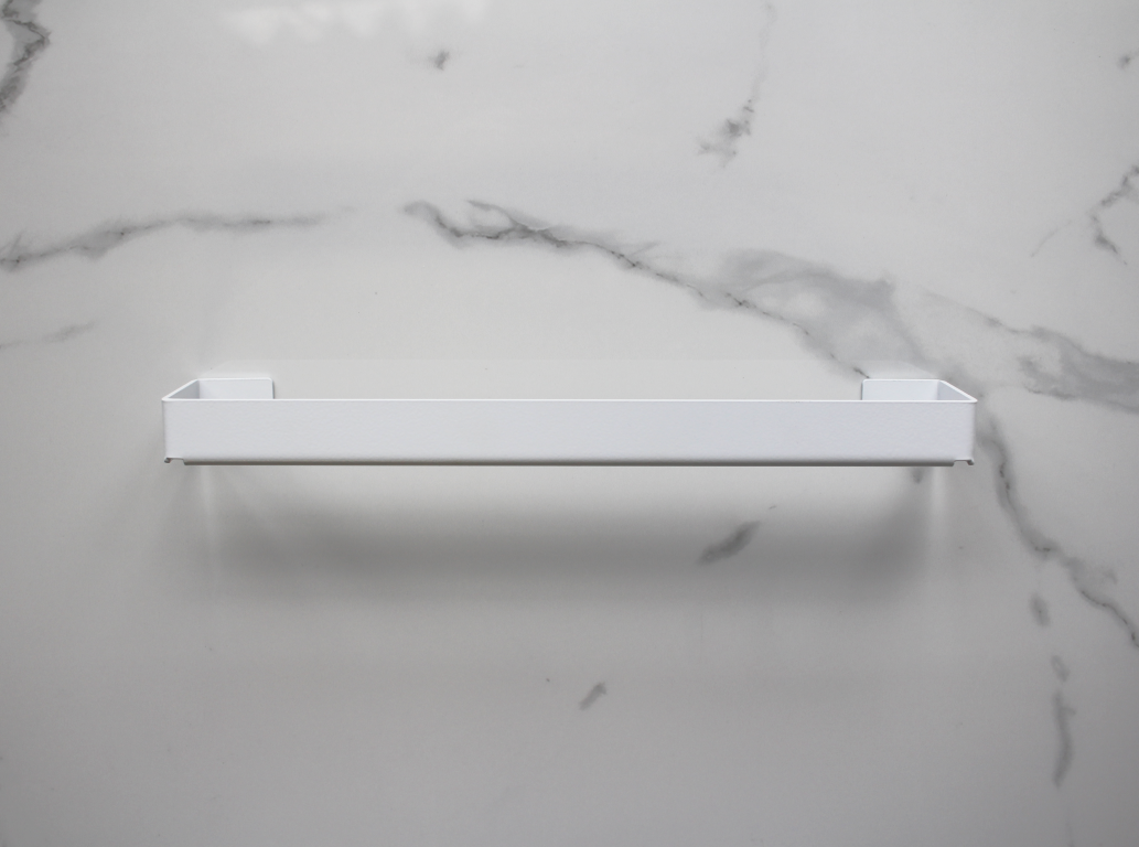 Simple hand towel rail perfect for the bathroom. Mount it to the wall or the side of your vanity for a simple and modern look. Powder coated stainless steel. 100% waterproof. Size: 300mm x 25mm x 60mm