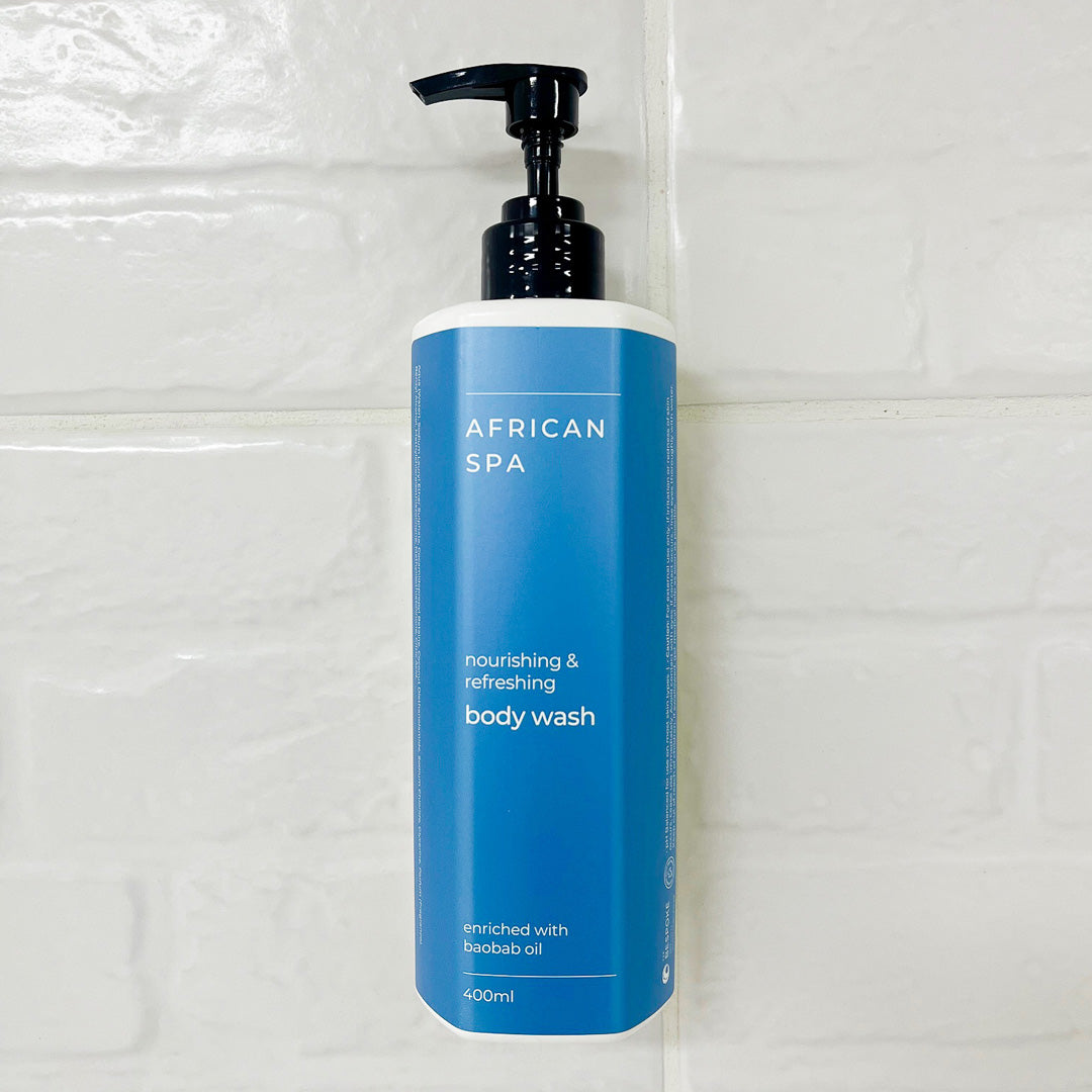 The New Contemporary looking African Spa 400ml dispenser bottles and invisible brackets